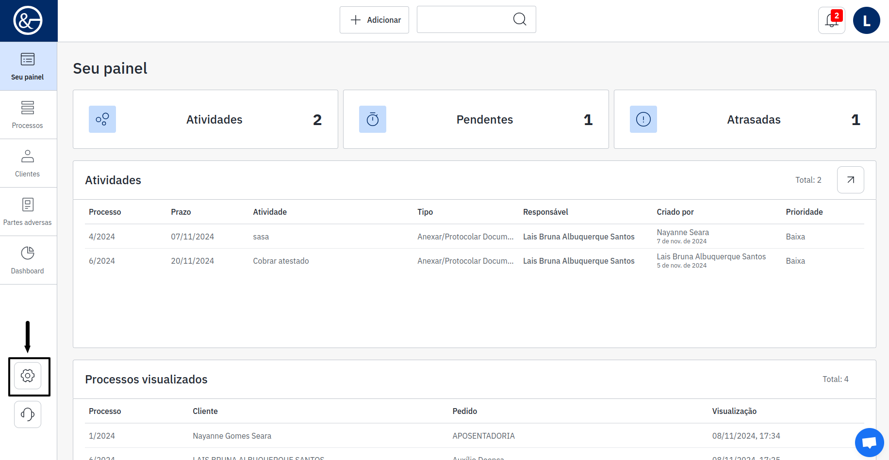 É necessário ir em Configuração, localizada no canto inferior esquerdo do sistema.