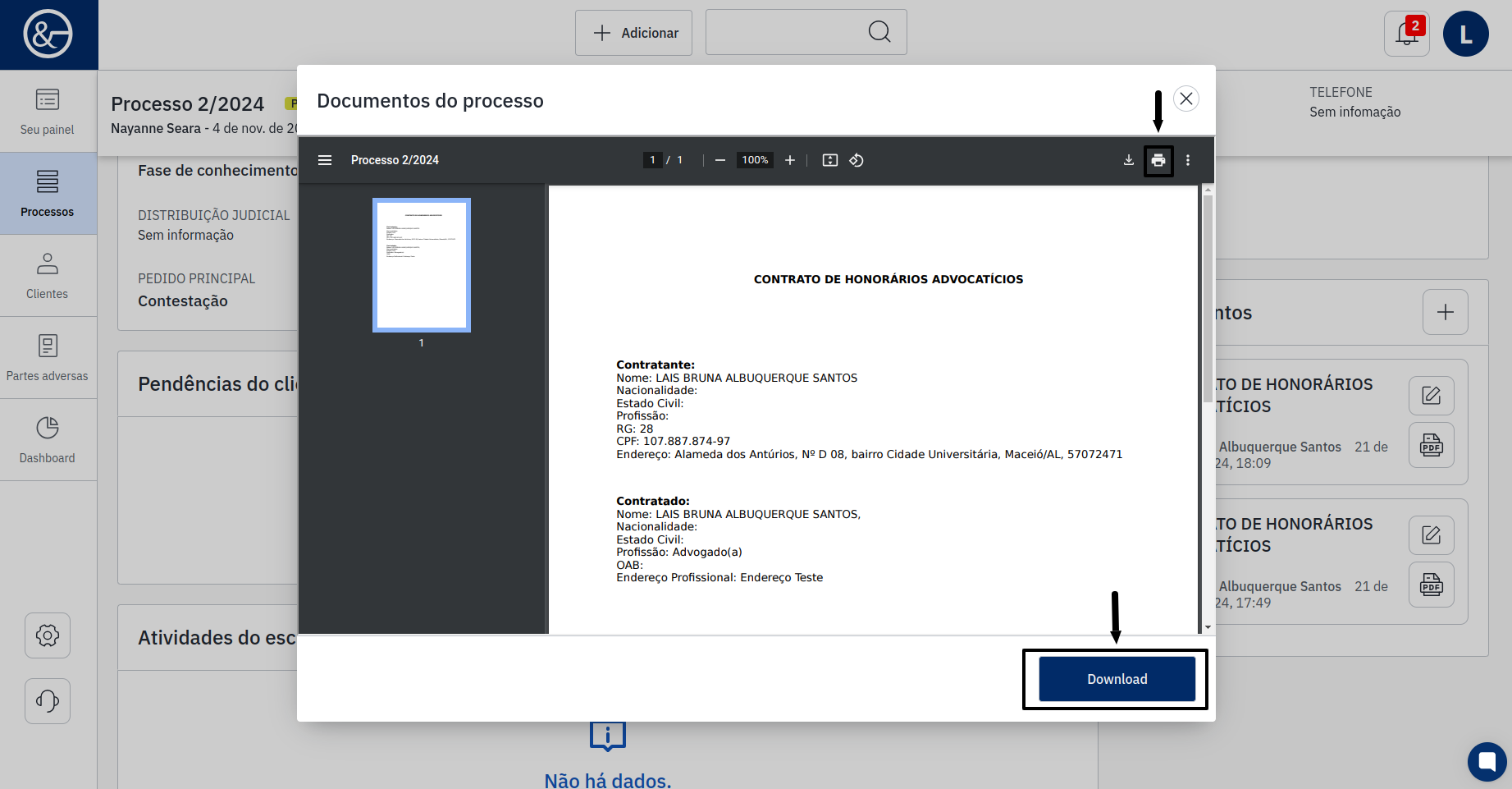 Após clicar em "PDF", o sistema oferecerá a opção de imprimir ou fazer o download.